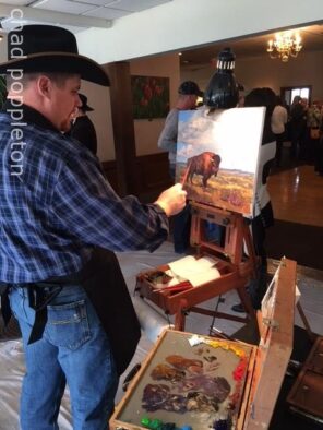 Snapshots From Various Events Painting titled “The Boss” Jackson Hole Quick Draw 2016Denver Colorado Art Museum 2016Jackson Hole Quick Draw 2016 titled “The Boss” Chad & Amy Poppleton, Craig Poppleton Southeastern Wildlife Exposition 2014 painting titled “Sneaking through the Leaves”2018 Jackson Hole Quick DrawCM Russell 2016 painting titled “Wilderness Harmony Applying the finishing touches – Jackson Hole Quick Draw 2016Jackson Hole Quick Draw 2016 – referenceKarl Runguis – Denver Colorado Art Museum 201630 Year Anniversary Legacy Show, My wife Amy and my two sisters.CM Russell Art in Action 2016 – Titled “Attitude is Everything”CM Russell Art in Action 2016 – “Attitude is Everything”